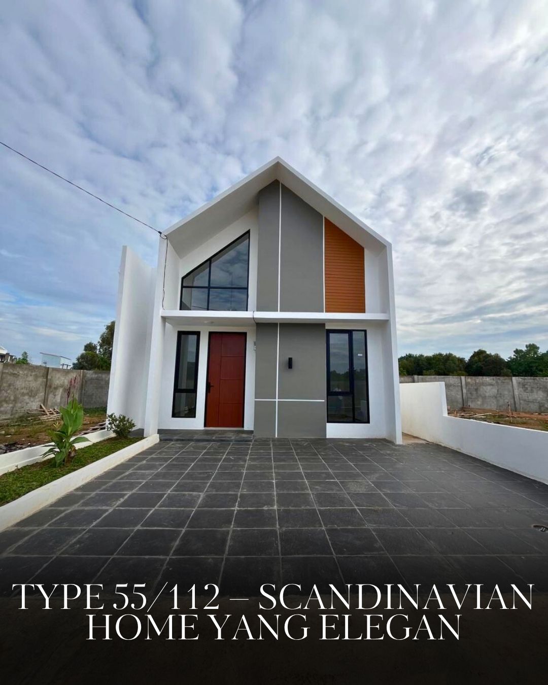 Hunian Skandinavian Modern yang lega dan fungsional, Type 55 di lahan 112 m². Dilengkapi 2 kamar tidur, 1 kamar mandi, carport dua mobil, ruang tamu open space dengan high ceiling, serta lahan belakang dan samping yang bisa dikembangkan sesuai kebutuhan.
